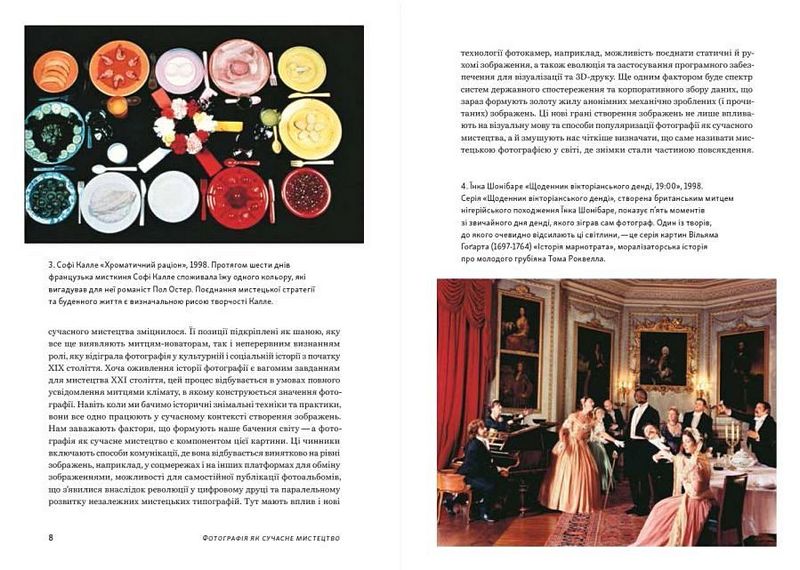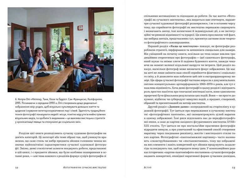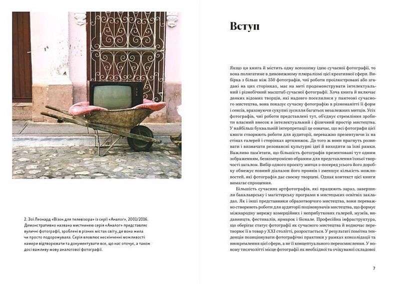«Фотографія як сучасне мистецтво» може стати ідеальним вступом до пізнання домінантної у наш час мистецької форми — фотографії. Книга презентує весь діапазон сучасної художньої фотографії: від інтимних портретів до складних зрежисованих світлин. «Фотографія як сучасне мистецтво» структурована тематично, в кожному з розділів авторка коментує роботи цілої низки митців, серед яких Філіп-Лорка ДіКорсія, Софі Калле, Олег Кулик, Йозеф Бойс, Сінді Шерман та багато інших. Шарлотта Коттон пише про нове покоління митців, які формують фотографію як культурно значущий медіум у нинішньому соціально-політичному кліматі. Ця книга — спроба відрефлексувати місце і значення фотографії в сучасному мистецтві.