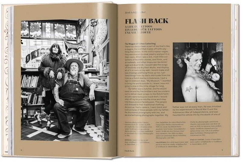 Amsterdam-based tattoo artist and historian Henk Schiffmacher is a living legend in the tattoo world. Traveling the world since the 1970s, Schiffmacher has amassed one of the largest collections of contemporary and historical tattoo ephemera in the world, known as the Schiffmacher Tattoo Heritage. He has tattooed many rock and pop stars, and his tattoo shop attracts countless tattoo pilgrims. A director and writer, he has published over twenty books, including TASCHEN’s 1000 Tattoos, and designed for many brands. In 2017, he was decorated by the king and queen of the Netherlands as an Officer in the Order of Orange-Nassau, a Dutch order of chivalry and the highest recognition given to a civilian.