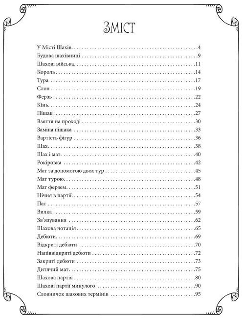 У цій книжці ми розповімо про захопливі пригоди мешканців Міста Шахів, які допоможуть нам пояснити правила руху фігур шахівницею, а також основні тактичні прийоми гри в шахи.