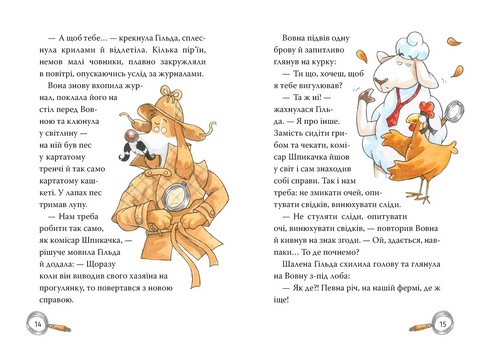 Якщо ферма стара, то там тиша й спокій? Та де! Баранчик Вовна разом із куркою Гільдою відкрив на фермі… детективну агенцію «На сіннику»! Відтоді приятелі-детективи розслідують справи так, що аж пір’я летить.