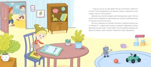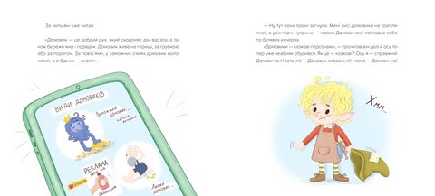 В одному місті на вулиці Вербовій стоїть затишний будиночок. На підвіконнях у ньому — квітучі вазони. А за кахляною пічкою зі своїми татом і мамою живе Домовичок. Господарі Домовиків — гарна, дружна сім’я. Та віднедавна в будиночку постійно спалахують сварки. Усе через планшет. Дочекавшись слушного моменту, Домовичок і собі зазирає в чудо-пристрій. Поринай у пригоду разом із Домовичком. І пам’ятай: дорослі завжди допоможуть вибратися з халеп. Головне — вчасно їх попросити.