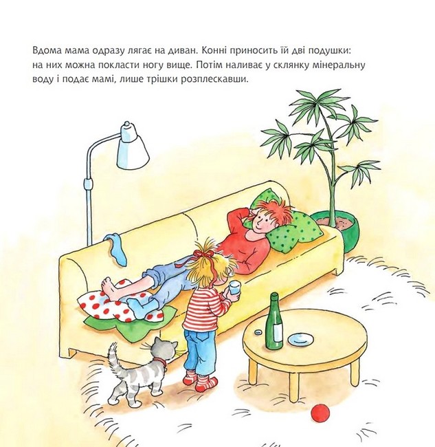 О боляче! Мама пошкодила собі ногу і не може ставати на неї. Конні мусить подбати про маму. Дівчинка приносить мамі подушки, подає склянку води… Конні пишається, що справді може бути корисною!