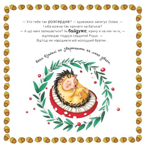 \nПрощавайте, ревнощі! Довіро, привіт! — це перша оповідка жабки Олівії та слова, які вона прагнула донести їжачку Ріццо. Малеча гадає, що батьки його більше не люблять! Вони приділяють увагу лише новонародженому братику, а про нього забули. Герой у розпачі: він постійно сердиться, й, видається, починає ненавидіти молодшого брата… У такому стані його знаходить Олівія, що пояснює зажуреному другу: заздрість і ревнощі лишень руйнують зсередини та заважають жити щасливо. Жабка говорить їжачку, що прийняття нового члена родини буває складним процесом, але в ньому потрібно шукати позитив. Про Ріццо не забули, просто немовлятко потребує трохи більше уваги.