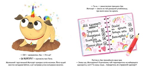 \nВін низенький і м’якенький. Обожнює рити нори й ганятися за котами. І він аж ніяк НЕ той вишуканий єдиноріг, про якого так мріяла принцеса Ава. Чи зможуть принцеса та Мопсоріг стати найкращими друзями?