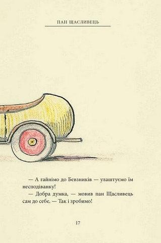 Пан Щасливець уперше сам за кермом вирушає на новому автомобілі до друзів Бевзників. І, звісно, від пригод не втекти. Там тачка капусти посеред дороги, там візок з бананами, а в лісі — ще й троє ведмедів. Але не всі пригоди скінчилися разом з мандрівкою. Що ж чекає на пана Щасливця дома і що то за натовп суне до нього? Про все це розповідає ілюстрована казочка Дж. Р. Р. Толкіна, яка зродилася з пригод самого автора на його першому автомобілі, придбаному 1932 року. Прототипами ведмедів стали іграшкові ведмедики Толкінових синів. А двом персонажам він дав імена двох героїв свого «Володаря Перснів». Та й ілюстрації до цієї книжечки виконав сам пан Толкін, прив’язуючи розповідь до малюнків, а часто мовби безпосередньо їх коментуючи.