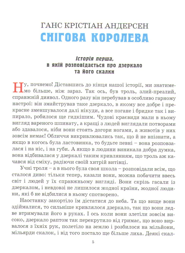 В збірку війшли три найвідоміші казки Ганса Хрістіана Андерсона, інші казки чудово доповнюють книжку. Більшість творів рекомендовано шкільною програмою молодших класів.