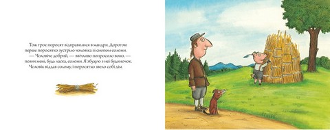 Всі ми знаємо стару англійську казку про трьох поросят, які побудували собі будиночки — один із соломи, другий з хмизу, а третій із цегли. А тоді прийшов злий вовк і… що ж було далі? Аксель Шеффлер створив власну ілюстровану версію цієї історії, з цікавинками й несподіваними поворотами сюжету.