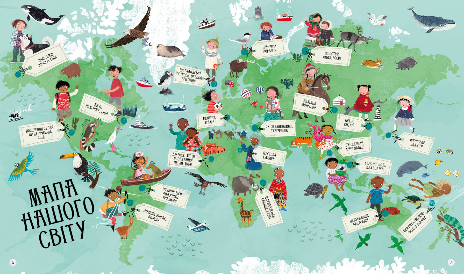 З книги «Це наш світ» ми дізнаємося, як живуть дітлахи в різних куточках нашої планети. Уявіть лишень: дехто з них плаває з черепахами на півдні Тихого океану, хтось їздить до міста снігоходом із диких земель Аляски, а хтось дістається школи підвісною дорогою над долиною в Андських горах. Усі ми живемо по-своєму в різних куточках нашої планети. Та існує багато речей, які нас об’єднують. Ця добра і проста ідея наскрізно пронизує всю книгу.
