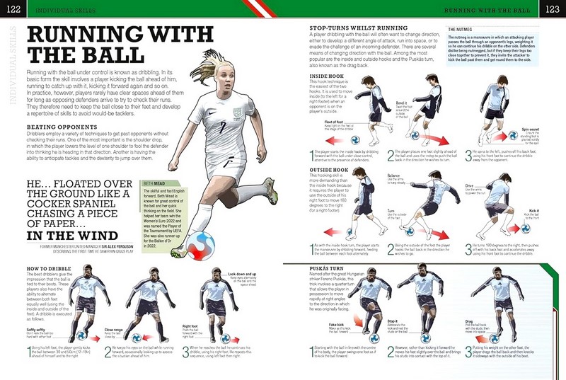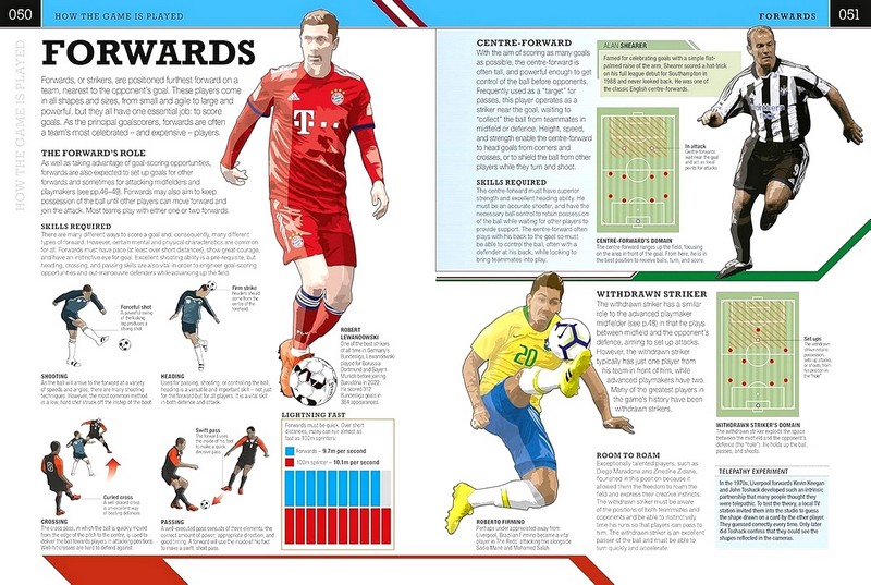 Сміливі покрокові твори мистецтва та текстовий профіль без жаргону ролі гравців, обладнання, командні формування, стратегії та індивідуальні навички, а карти, цитати та статистика дають вам усі ключові факти про національні команди, відомий клуб сторони та знакових гравців, а також найбільші змагання у всьому світі.