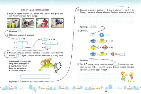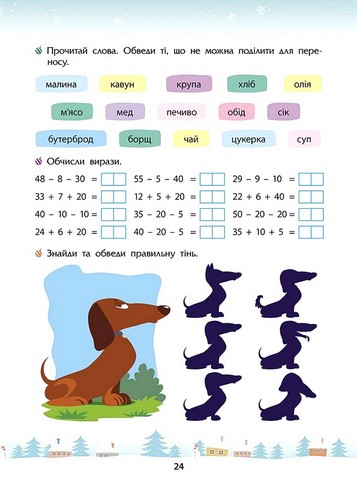 - вправи з математики, української та англійської мов;