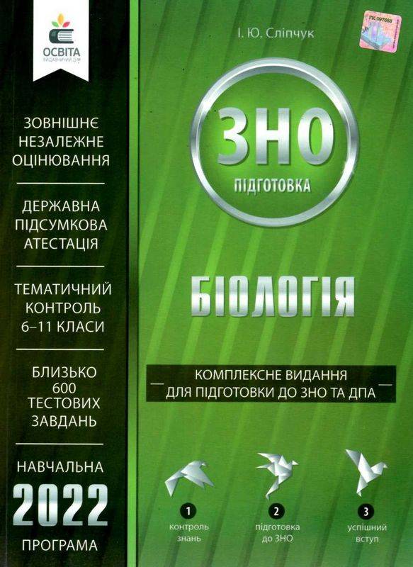 Біологія Комплексне видання для підготовки до ЗНО та ДПА 2022 Сліпчук І. Освіта. Комплексне видання для підготовки до ЗНО та ДПА з біології – доступний, сучасний, комплексний тренажер для підготовки до ЗНО, формування навичок правильно і швидко виконувати тестові завдання різних форматів.