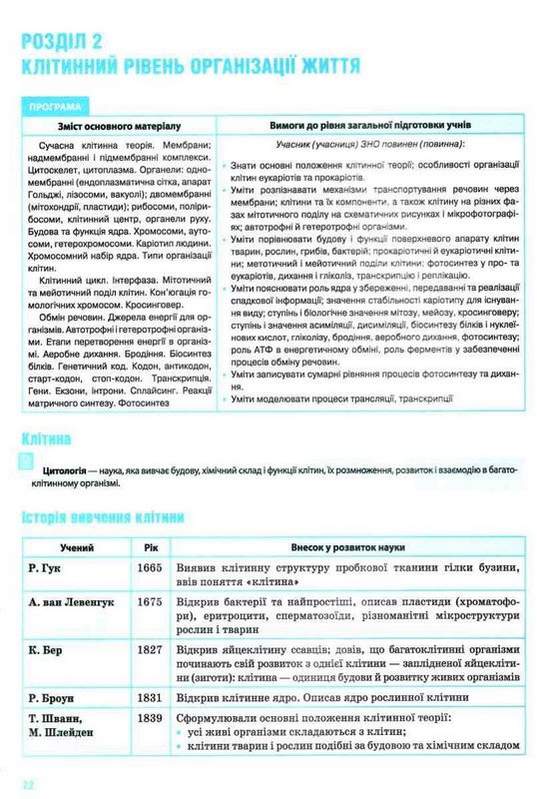Навчальні матеріали відповідають чинній програмі ЗНО та оновленій навчальній програмі з біології для закладів загальної середньої освіти.
