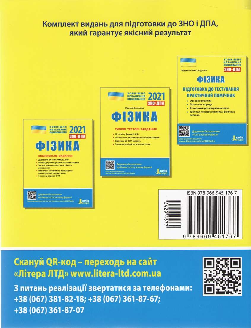 Фізика Підготовка до тестування Практичний помічник Александрова Л. Літера. Посібник містить добірку основних формул, короткі вказівки до розв’язування основних видів задач з фізики, таблицю похідних одиниць фізичних величин та поради учасникам тестування.