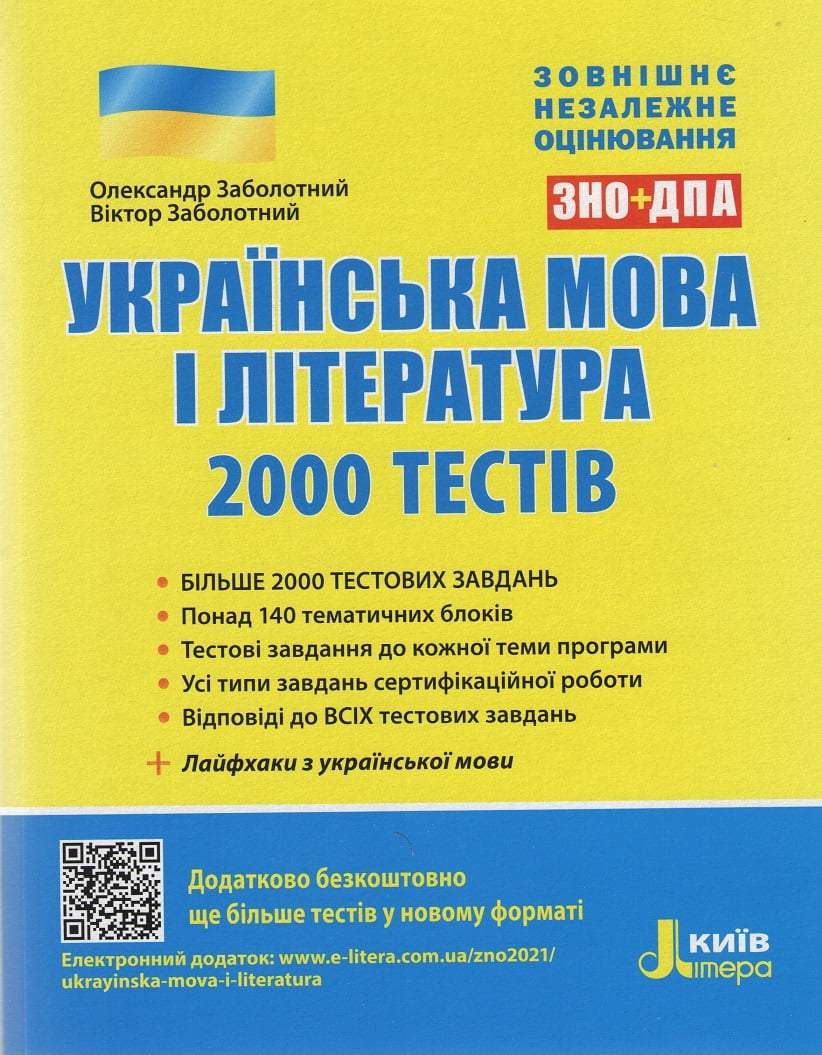 Українська мова і література 2000 тестів для підготовки до ЗНО Заболотний О. Літера. Посібник призначений для ефективної підготовки до державної підсумкової атестації та зовнішнього незалежного оцінювання.