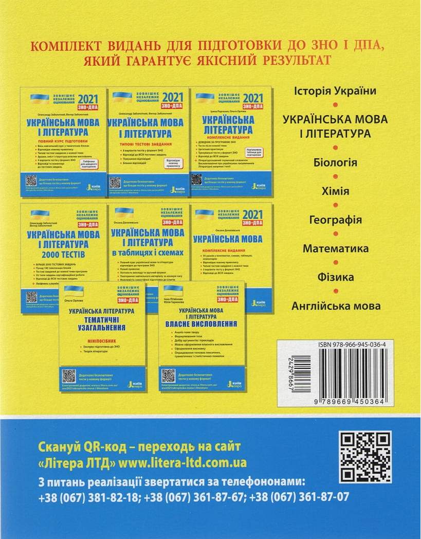 Українська мова і література 2000 тестів для підготовки до ЗНО Заболотний О. Літера