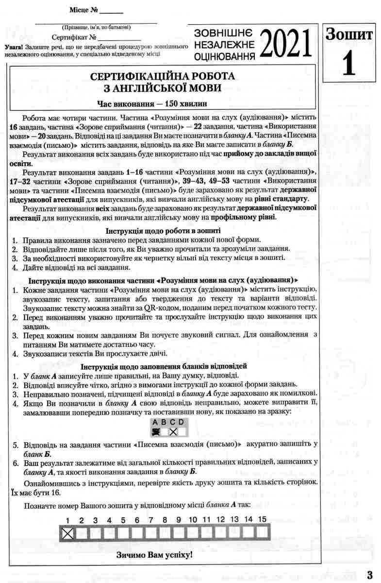 ЗНО 2021 Англійська мова Тренувальні тести для сертифікаційних робіт Несвіт А. Грамота 41413