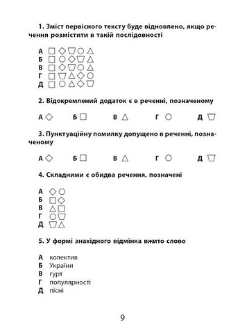 \nй аналіз помилок! Тож пропонуємо вам тренажер, який принесе подвійну користь: допоможе сформувати навички виконання типових завдань НМТ, а також посприяє повторенню й закріпленню основних тем із синтаксису й пунктуації (а це ?40% усіх балів на іспиті).