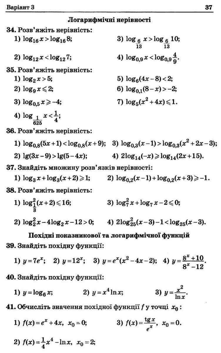 Збірник задач тестів і контрольних робіт Математика 11 клас Рівень стандарту Програма 2019.