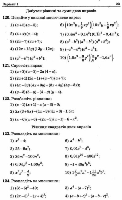 Посібник є дидактичним матеріалом з алгебри для 7 класу загальноосвітніх навчальних закладів. Він є складовою навчально-методичного комплекту та відповідає підручнику з алгебри для 7 класу (автори Мерзляк А. Р., В. Б. Полонський, М. С. Якір). Першу частину «Вправи» поділено на три однотипних варіанти по 212 завдань у кожному. Друга частина посібника містить завдання для контрольних робіт (два варіанти).