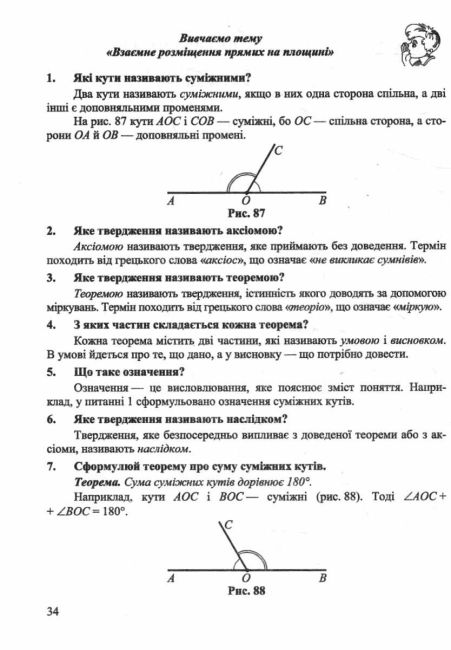 У посібнику подано весь матеріал шкільного курсу геометрії для 7 класу у вигляді запитань і відповідей, зразки розв’язання задач і вправ, а також завдання для підготовки до самостійних чи контрольних робіт. Посібник буде корисним для учителів математики, учнів 7-х класу та їхніх батьків.