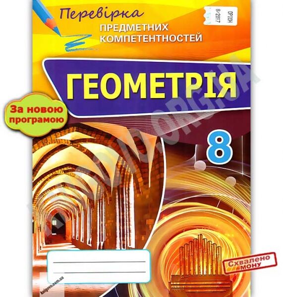 Перевірка предметних компетентностей Геометрія 8 клас для загальноосвітніх навчальних закладів. Збірник завдань для оцінювання навчальних досягнень учнів. Містить перевірні роботи для тематичного оцінювання у двох варіантах однакової складності.
