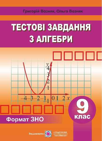 Збірник тестових завдань з алгебри 9 клас Возняк Г. Підручники і посібники. У посібнику вміщено тестові завдання з алгебри, зміст і послідовність яких відповідають чинній програми для 9 класу загальноосвітніх навчальних закладів дванадцятирічної школи.
