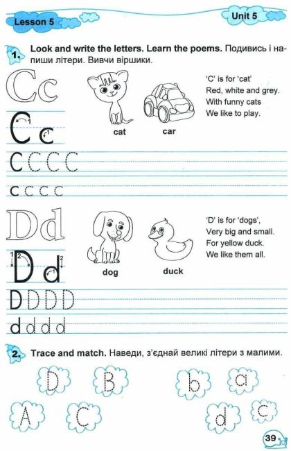 Робочий зошит з англійської мови для 1-го класу закладів загальної середньої освіти укладено відповідно до Державного стандарту початкової освіти, типових освітніх програм та підручника Англійська мова 1 клас авт. Карп’юк О.Д. Цікаві та захоплюючі завдання, розроблені відповідно до вікових особливостей першокласників, сприятимуть виробленню навичок письма, збагаченню словникового запасу, закріпленню та систематизації знань школярів. Для учнів 1-го класу та вчителів англійської мови.