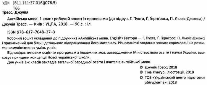Робочий зошит із прописами Англійська мова 1 клас НУШ До підручника Quick Minds Г. Пухти та ін. Авт: Тресс Джулія Вид-во: УЦПА 20108