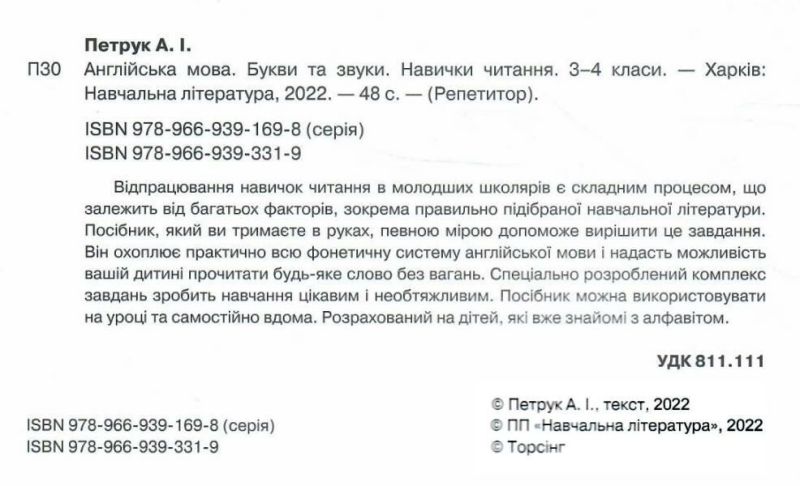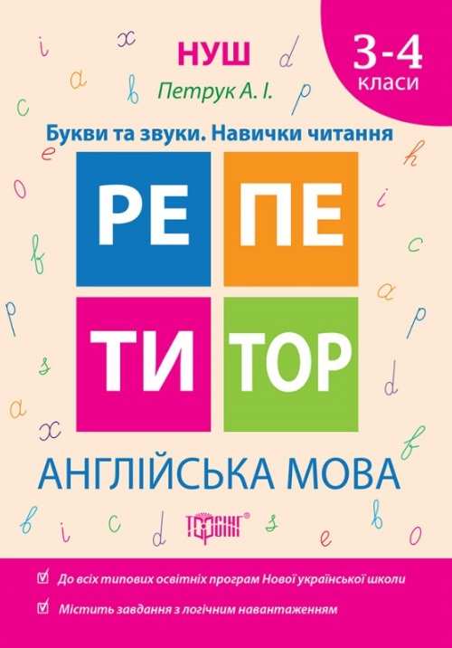 Репетитор Англійська мова 3-4 класи Букви та звуки Навички читання НУШ Петрук А. Торсінг