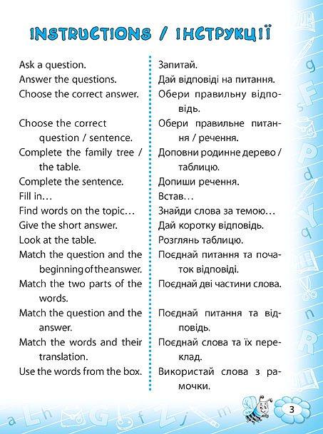 Тренажер з англійської мови для 3 класу підготовлений за Новою програмою МОН України для початкової школи. Систематизований і поданий в оригінальному форматі матеріал курсу 3 класу дає змогу підготуватися до контрольних і самостійних робіт, поглибити знання, закріпити практичні уміння та навички за допомогою вправ різних типів. Сучасне оформлення та наочна форма подання матеріалу роблять роботу з книгою легкою і зручною.