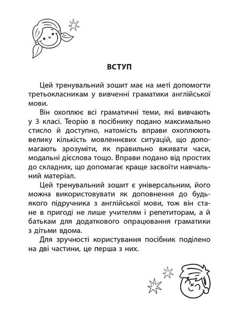 Робота із цим тренувальним зошитом дає змогу закласти базові знання, необхідні для опанування письма англійською мовою, а запропонований обсяг завдань допоможе удосконалити деякі навички та довести їх до автоматизму.