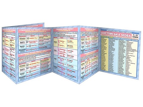 Шпаргалка з англійської мови для учнів 7-11 класів! Легкий і зручний формат книжечки (10,3х13,9 см) — ідеальний супутник для навчання. Двостороння шпаргалка у вигляді гармошки з 5 перфораціями зручно вміщується в кишені.