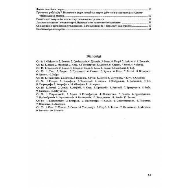 Робочий зошит з Біології для 7 класу складено за Новою програмою до підручника Біологія 7 клас Нова програма Авт: Остапченко Л. Балан П. Серебряков В. Матяш Н. Горобчишин В. Вид-во: Генеза. У зошиті запропоновано завдання на відтворення та закріплення знань та творчі завдання. Видання містить розробки до практичних робіт, які допоможуть учневі набувати практичних умінь і навичок, необхідних для вивчення живих організмів. Для учнів 7 класів загальноосвітніх навчальних закладів і вчителів біології.