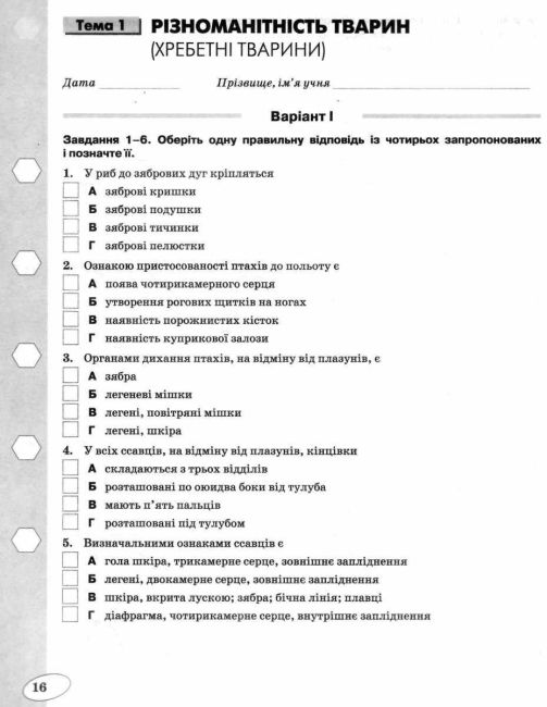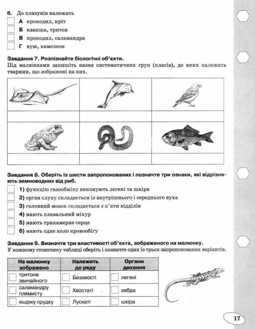 Зошит для контролю навчальних досягнень з Біології для 7 класу за Новою програмою до підручника Біологія 7 клас Нова програма Авт: Костіков І. Ю., Волгін С. О., Додь В. В., Сиволоб А. В., Довгаль І. В., Жолос О. В., Скрипник Н. В., Ягенська Г. В., Толстанова Г. М., Ходосовцев О. Є. Вид-во: Освіта.