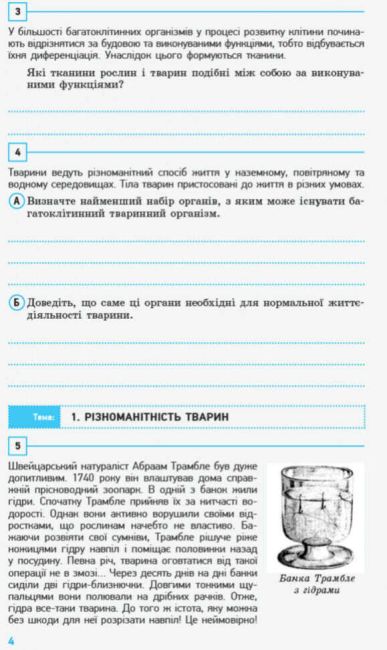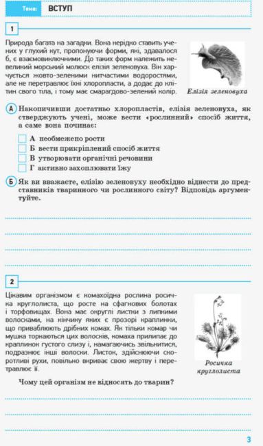 Посібник створено відповідно до чинної навчальної програми з біології для 7 класу закладів загальної середньої освіти. Зошит містить різні типи завдань для формування в учнів предметних, міжпредметних та ключових компетентностей на уроках біології.
