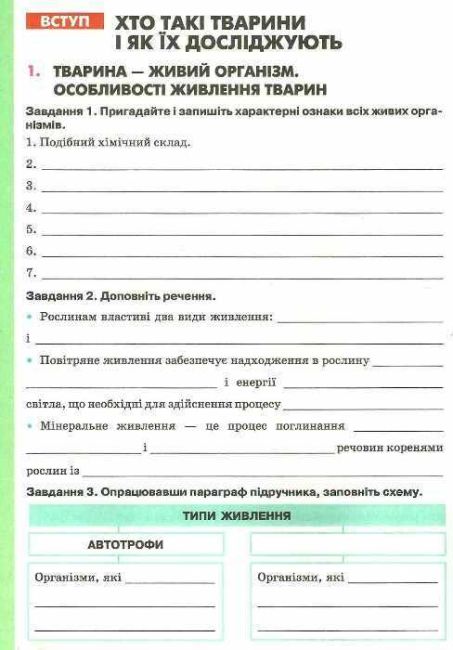 Робочий зошит Біологія 7 клас До підручника Костікова І. Нова програма Авт: Сліпчук І. Вид: Освіта