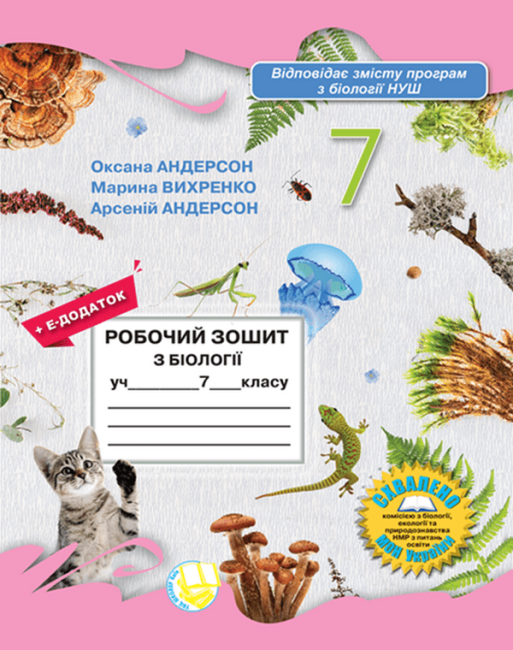 Робочий зошит з біології 7 клас НУШ Авт: Андерсон О.А. та ін. Вид-во: Школяр 13289