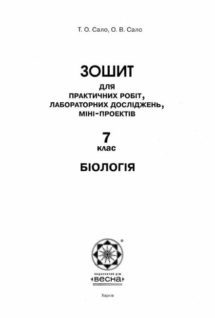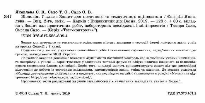 Тест-контроль Біологія 7 клас Нова програма Авт: Яковлева Є.В. Сало Т.О. Сало О.В. Вид-во: Весна 13392
