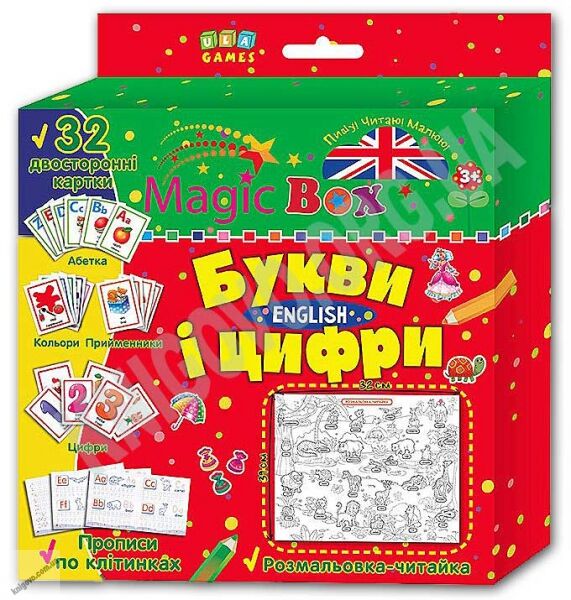 English Букви і цифри Magic box. Комплект допоможе організувати заняття з англійської мови для дітей.
