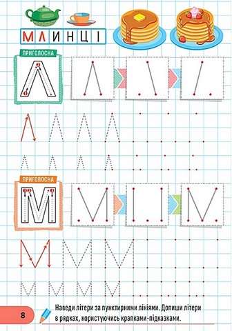 Мета цієї серії - поступово підготувати руку дитини до письма. Для цього запропоновані цікаві завдання, вправи й малюнки на розвиток дрібної моторики. Регулярне тренування малювати прості, хвилясті та ламані лінії по клітинках, відтворення візерунків, обведення елементів букв та цифр, фарбування малюнків сприятимуть набуттю малюками навичок каліграфічного письма, охайного почерку, зорової пам'яті, творчих здібностей і логічного мислення.