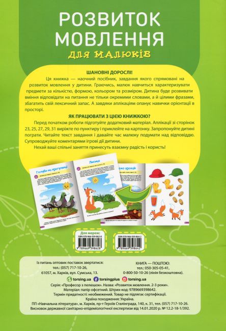 "Професор з Пелюшок: Розвиток мовлення для малят 2-3 роки" від А. Фісіної, видавництва "Торсінг" - це навчальний посібник, спрямований на підтримку та розвиток мовлення у дітей віком 2-3 роки.