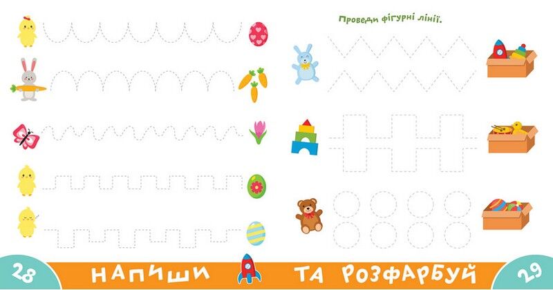 Інтерактивні кольорові книжки серії «Прописи-тренажер» з прописами для малюків, розмальовками та цікавими завданнями допоможуть у підготовці дитини до школи. На кожній сторінці видань представлено різноманітні розвиваючі завдання з письма, надано оригінальні творчі вправи та розмальовки. Яскраве оформлення та різноманіття завдань не дадуть малюку занудьгувати й допоможуть організувати корисне й цікаве дозвілля. Простота в оформленні, лаконічність дизайну та крупний формат роблять книжку зручною у використанні.