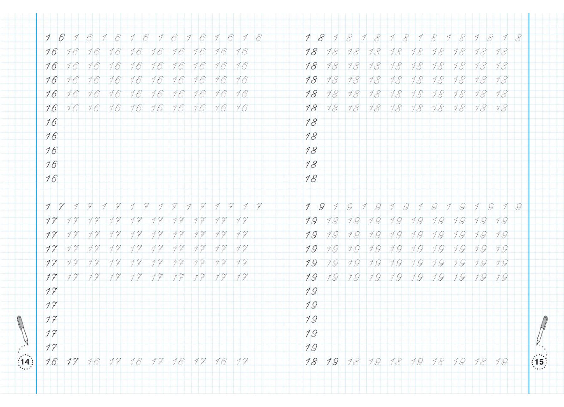 Писати цифри — просто! Ви тримаєте в руках прописи-тренажер, за допомогою яких ваш малюк зможе підготуватися до написання цифр від 0 до 9 та їхніх елементів. Пропоновані вправи оформлено відповідно до вимог сучасних освітніх програм і призначено для дітей дошкільного віку та учнів першого класу. У робочому зошиті розміщено комплекс завдань, мета яких — сформувати навички написання чисел від 0 до 20. Вправи дібрано за принципом «від простого до складного». Прописи з математики сприяють розвитку дрібної моторики та розумових здібностей, тренують руку, привчають дитину дотримуватися рядка.
