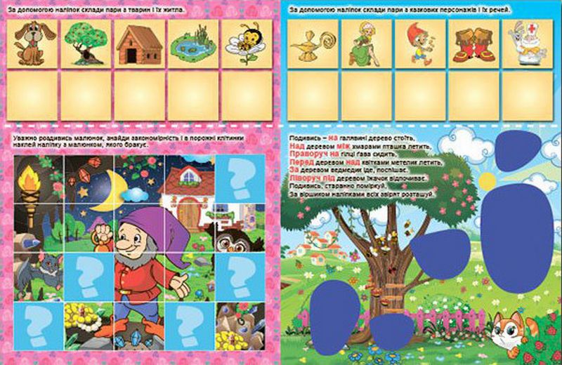 Книжки «Цікаві та корисні завдання» серії «Розвивайка» дуже сподобаються вам і вашому малюку! Вони відкриють дивовижний та захоплюючий світ знань. На сторінках цих книжок ви знайдете безліч цікавих, веселих розвиваючих завдань з наліпками, які допоможуть дитині навчитися самостійно знаходити рішення, творчо мислити, розвинуть логіку, уяву та увагу.