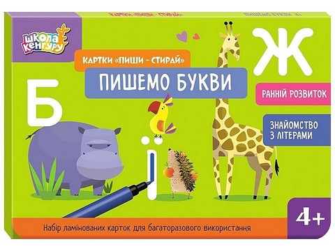 Школа Кенгуру. Ранній розвиток. Картки "Пиши-стирай". Пишемо букви 100890