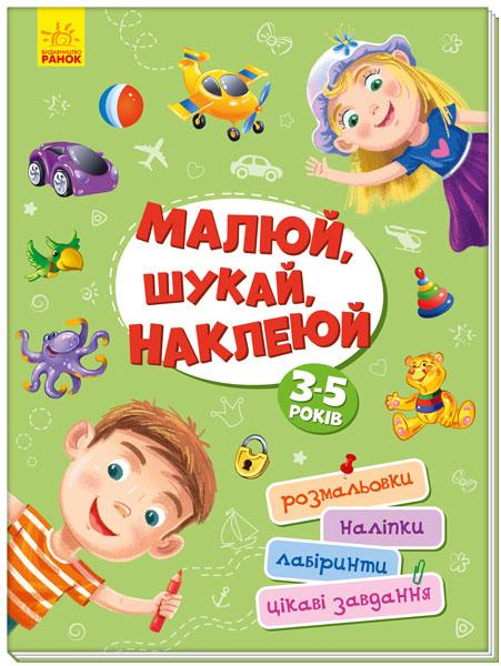 Територія без дорослих Малюй шукай наклеюй 3-5 років Ранок. Лабіринти, розмальовки, наліпки усе це під однією обкладинкою. Піктограми дозволяють дитині виконувати завдання без участі дорослих.