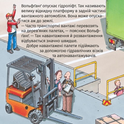 Книжка, повна всіляких автомобілів, вантажівок і різноманітного транспорту, адже Антон вирушає разом з другом в транспортно-експедиторську компанію.