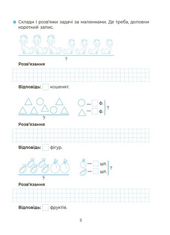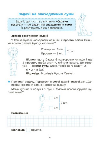 \nВиконуючи завдання, дитина навчається розв’язувати задачі в різні способи і поступово закріпить алгоритм розв’язування задач: