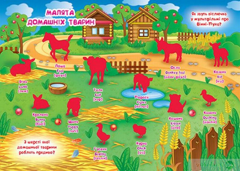 За допомогою цієї книжки ти познайомишся з різними малятами тварин. Ти дізнаєшся багато нового про навколишній світ і почнеш вивчати англійську мову. Наклей усі наліпки з малятами на потрібні місця.