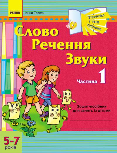 Зошит-посібник для занять з дітьми 5-7 років Слово Речення Звуки Частина 1 Ранок. Зошити-посібники є складовою частиною навчально-методичного комплекту «Віконечко у світ грамоти» з навчання дітей 5–7 років елементів грамоти. Комплект розроблено для індивідуальної роботи з дитиною з урахуванням її індивідуальних особливостей в умовах дошкільного навчального закладу та сім’ї.
